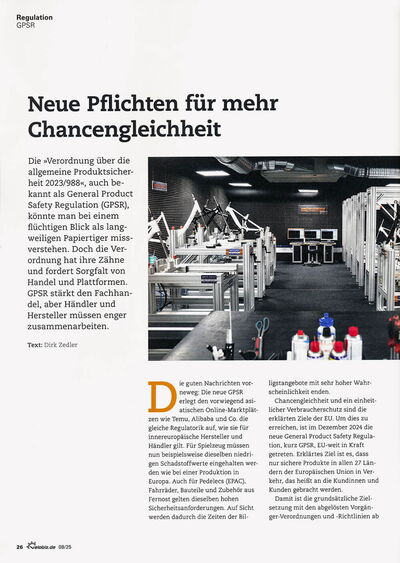 Die guten Nachrichten vorneweg: Die neue GPSR erlegt den vorwiegend asiatischen Online- Marktplätzen wie Temu, Alibaba und Co. die gleiche Regulatorik auf, wie sie für innereuropäische Hersteller und Händler gilt. Für Spielzeug müssen nun beispielsweise dieselben niedrigen Schadstoffwerte eingehalten werden wie bei einer Produktion in Europa. Auch für Pedelecs (EPAC), Fahrräder, Bauteile und Zubehör aus Fernost gelten dieselben hohen Sicherheitsanforderungen. Auf Sicht werden dadurch die Zeiten der Billigstangebote mit sehr hoher Wahrscheinlichkeit enden.